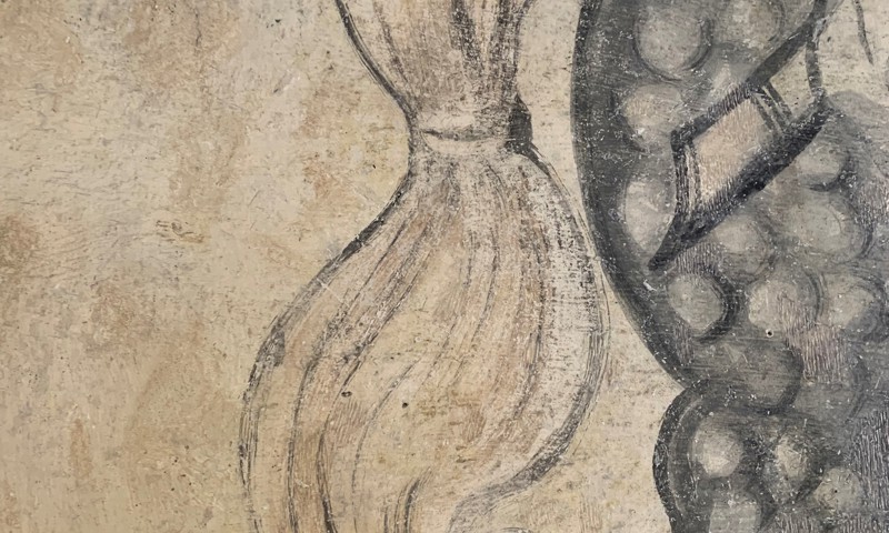 Muren, de er udført på, indeholder mineraler og salte fra tiden, hvor der var heste opstaldet i porten. Når huset opvarmes, trækker fugten dem med ind gennem muren, hvor de til sidst har udkrystalliseret sig og til skræk for konservatorer og museumsfolk skubbet kalken af muren som fint støv.
