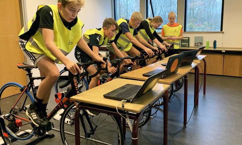 Skolen har lavet et e-cykling-rum med fire e-cykler, så eleverne kan cykle hele året og på den måde give alsidighed i træningen.