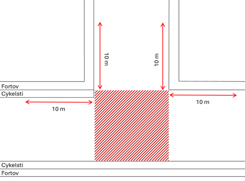 Vi vil gerne hjælpe dig med at parkere korrekt. Derfor vil vi synliggøre 10 meterreglen med en lille gul trekant, som viser, hvordan du parkerer korrekt/lovligt.