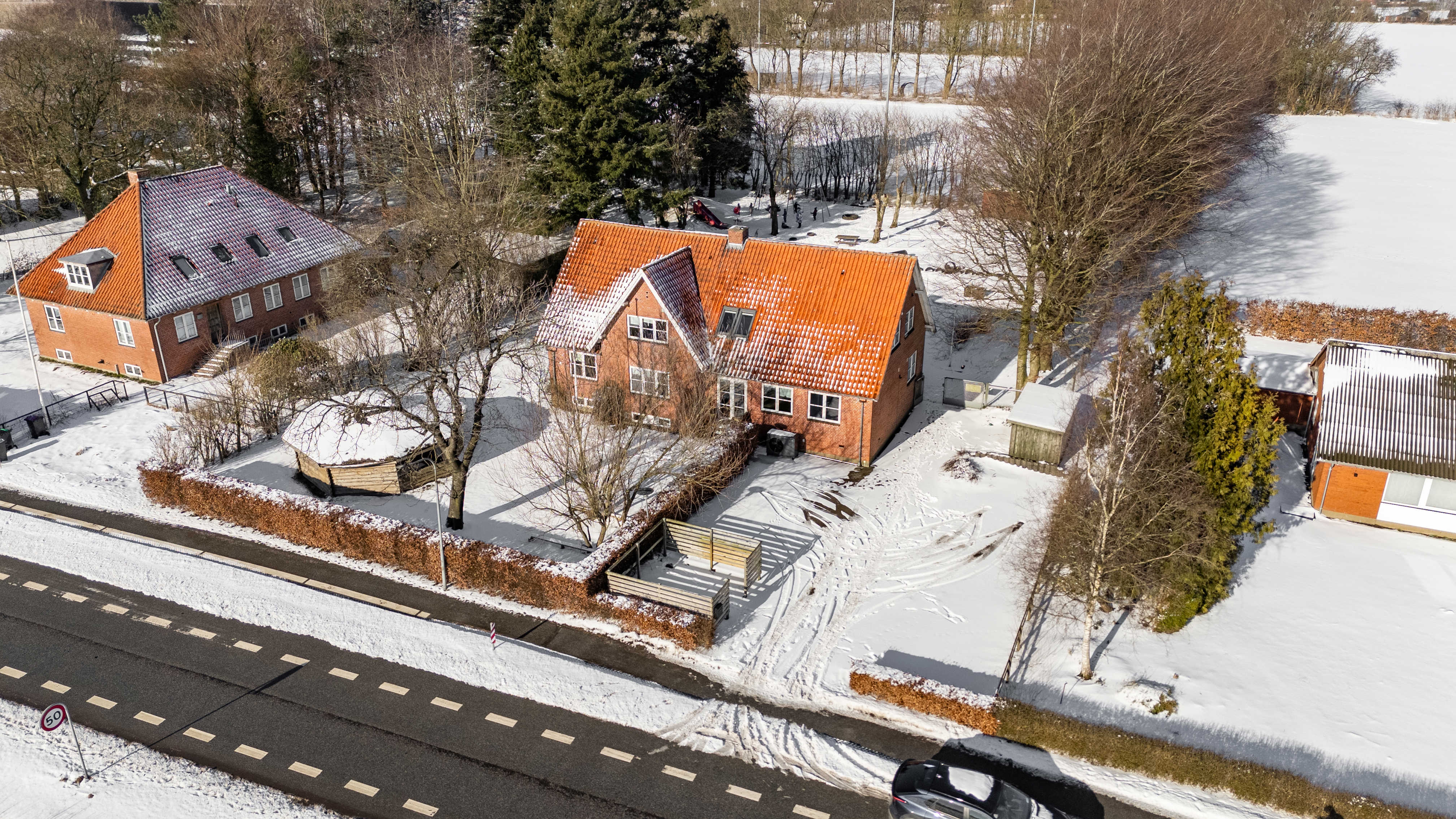Luftfoto af Skolevej 52 set fra vejen
