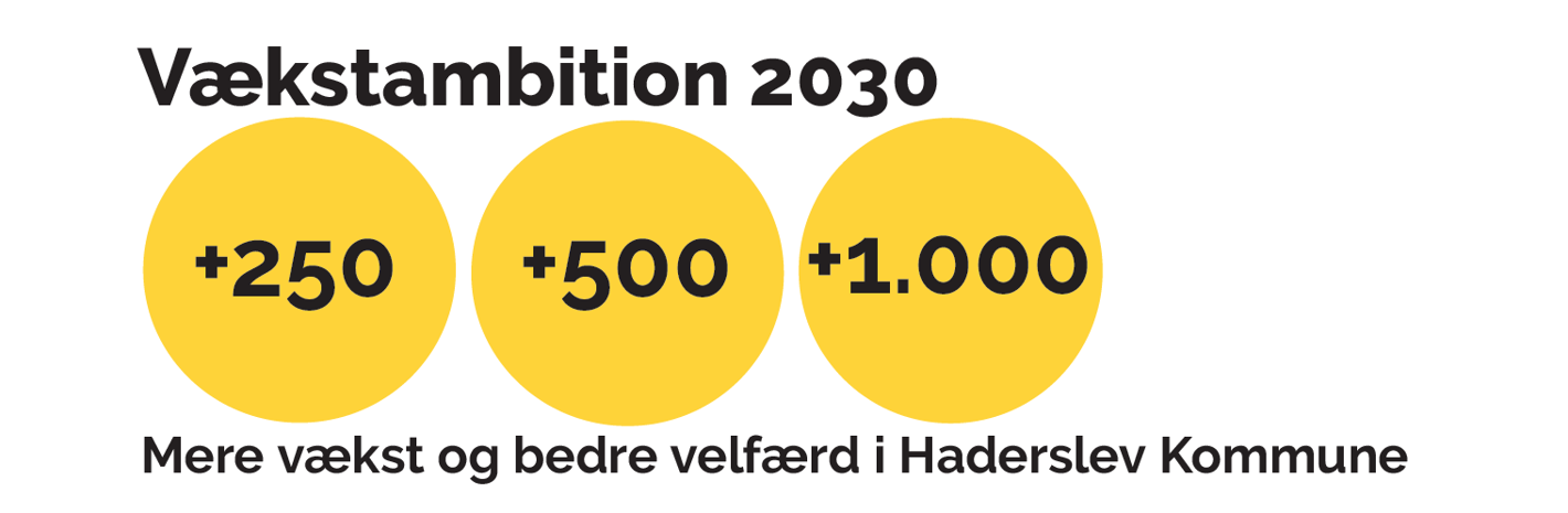 Det skal være let at starte og udvikle sin virksomhed, der skal være gode muligheder for at få en uddannelse og flere mennesker skal bo i Haderslev Kommune, for at vi kan udvikle velfærden med kommunens borgere.